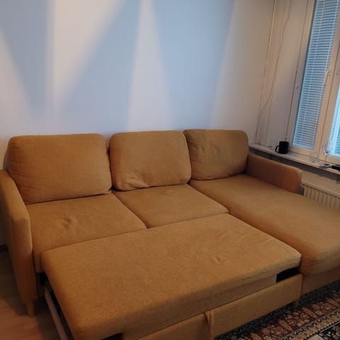 Myydään futon-sohva. Sohvan voi avata vuodesohvaksi. Noudettavissa Kastelli, Oulu.