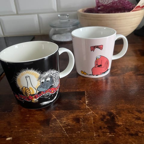 Hyväkuntoisia muumimukeja ylimääräisiä.