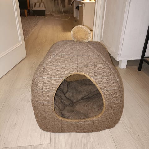 Pyöreä, kupolimallinen peti, jossa suuri etuaukko ja ylhäällä korvamaiset yksityiskohdat. Sisällä irrotettava, pyöreä tyyny, joka helpottaa puhdistusta. Soveltuu kissalle tai pienelle koiralle suojaisaksi lepopaikaksi esimerkiksi sisätiloihin sohvalle tai lattialle asetettuna.