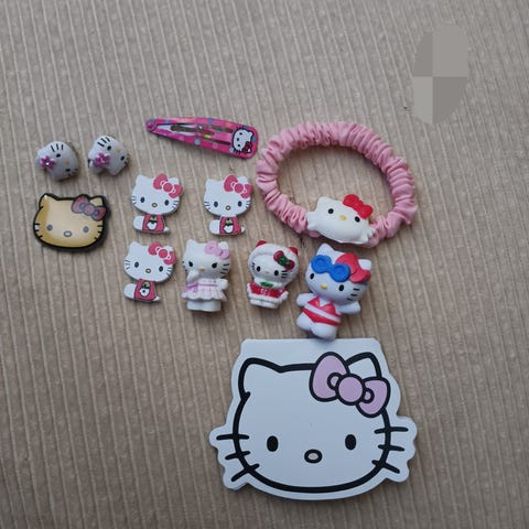 Kuvan mukaisesti 5kpl pinssit ja Helloy Kitty korvakorut.