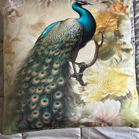 Pehmeä, elefantin muotoinen koristetyyny. Väri vaalea beige, yksityiskohdat ruskeat. Materiaali pehmeää kangasta, täytetty kuitutäytteellä tai vastaavalla pehmeällä materiaalilla. Taloudessa ei ole lemmikkieläimiä.