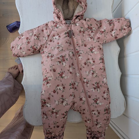 Newbien siniharmaa pöllökousinen toppahaalari koossa 68 . Reilua kokoa! Meni hyvin koko talven 68-74 vaatekokoa käyttävälle.