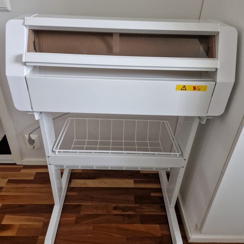 Leveys 76 cm ja syvyys 35 cm, kankaan leveys 55 cm