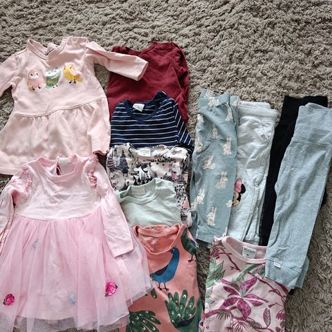 Kuvan lasten vaatteet, koko 74-80.