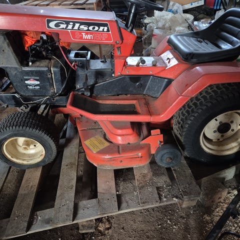 traktori, jossa etukuormaaja . Traktorissa on ohjaamo ja takapyörissä ketjut. Etukuormaaja .takalevy+ lumilinko.