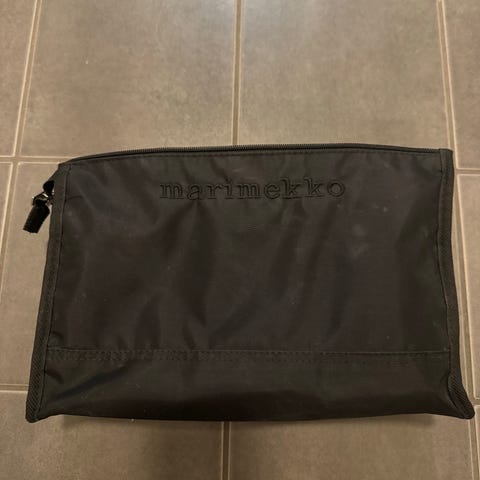 Marimekko kangaslaukku unisex-käyttöön. Laukku on mustaa kangasmateriaalia ja siinä on vetoketjulla suljettava etutasku sekä pääosio. Edessä on Marimekko-logo. Sopii arkilaukuksi monenlaiseen käyttöön. Huom! Ei olkahihnaa mukana. Katdo myös muut Mari kohteeni.