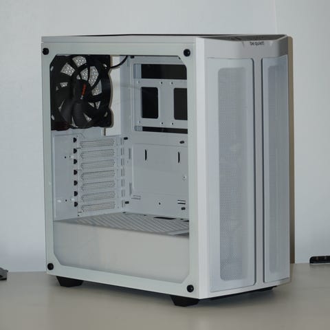 Kotelossa on muutama hyvin pieni käytön jälki, joita ei huomaa ellei niitä erikseen etsi. Edellinen omistaja on porannut vasemman puolen sivupaneeliin vastaavat reiät kuin oikealla puolella, jotta kotelon voi halutessaan asettaa makuuasentoon kummallekin puolelle.