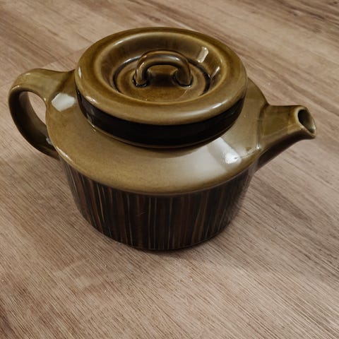 Arabia teekannu siivilällä. Ruskeasävyinen keraaminen kannu, jossa on irrotettava sisäosa teen hauduttamiseen sekä erillinen kansi. Kannussa on sivukahva ja kaatonokka. Soveltuu teen hauduttamiseen ja tarjoiluun kotikäytössä. Kosmos sarjaa.