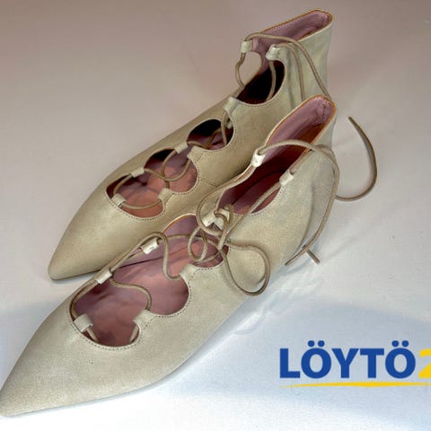 Yksityiskohdat: Sirot, nilkan ympärille solmittavat nyörit, jotka tuovat asuun ripauksen romantiikkaa