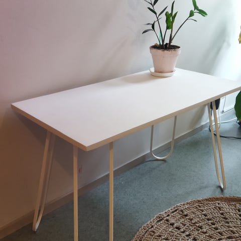 Myydään kapea jämäkkä pöytä, putkijalat, säädettävä korkeus, siistikuntoinen, 70 euroa, nouto.