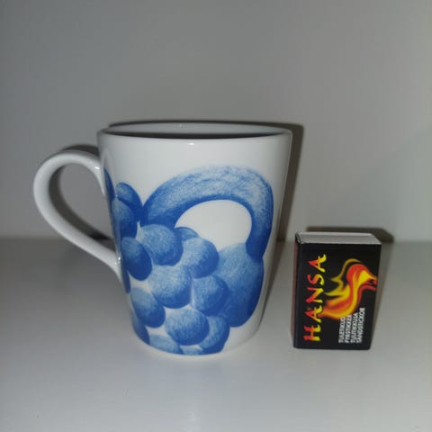 Ajattoman kaunista teemukia koristaa Aarikan Pässi. Mukin korkeus 9,5 cm.