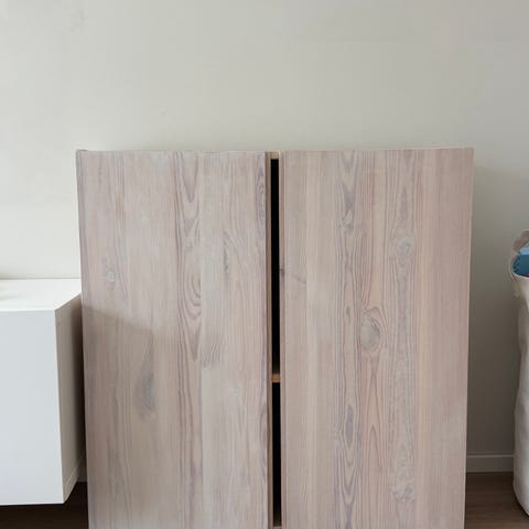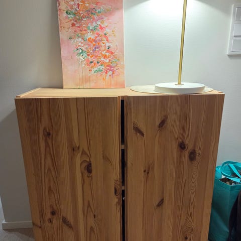 Siistikuntoinen IVAR-kaappi PrettyPegs vetimillä ja jaloilla. Lisätty yksi hylly. Ei mitään merkittävää kulumaa. Toiseen reunaan on ruuvattu kuvamukainen naulakko. Sen voi ottaa pois. Vain nouto.