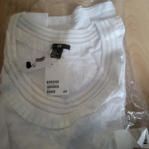 H&M raidallinen toppi, neuletoppi, 100% puuvillaa. Hippi/funkytyylinen. Muuten erittäin siistikuntoinen, paitsi olkapäässä pikkusen epätasaiset jutut (kuva)