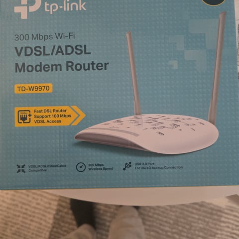 Myynnissä kuvan Technicolor TG799TSvac reititin virtalähteellä.