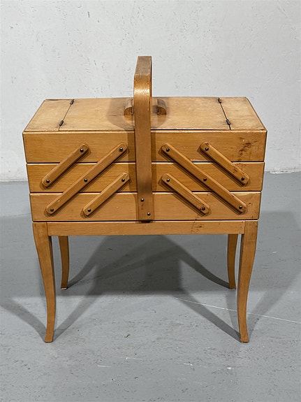 Ihana 1900 luvun puolivälin funkkis henkinen senkki. Kolme vetolaatikkoa yläosassa ja kolme ovea ja avaimet (yksi lukko ei toimi). Senkissä on ruskea viimeistely ja se seisoo neljällä jalalla.