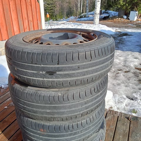 Vararenkaaksi yksi rengas, ei vannetta. Kulutuspintaa n. 5 mm.