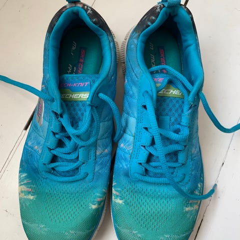 Skechers lasten slip-on lenkkarit koko 37 (24 cm). Päällinen joustavaa tekstiiliä, jossa liukuvärjätty keltainen–vaaleanpunainen sävy. Kengissä ei ole nauhoja, vaan ne puetaan jalkaan sujauttamalla. Päällyskankaassa käytön jälkiä (huomioitu hinnassa), mutta ehjät ja muuten hyväkuntoiset.
