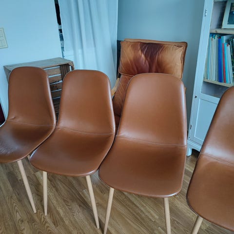 6 kpl kuvan mukaisia puisia tuoleja. Lievestuoreelta nouto tai korvausta vastaan kulkeutuu JKL/Laukaa.