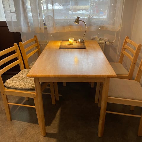 Ikean pöytä ja 2kpl jyskin tuolit.