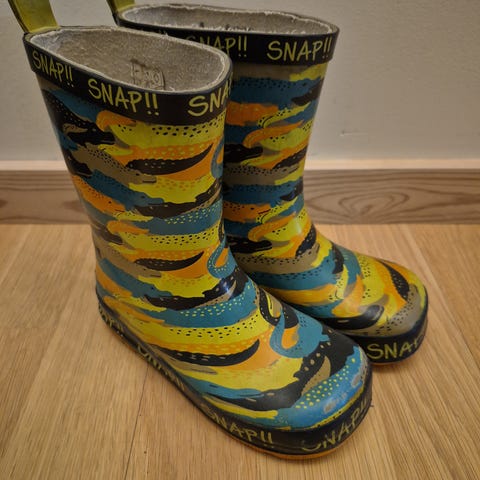 Vain kevyesti huuhdeltu ja samalla todettu vedenpitävyys. Varsissa kiristimet. Mukaan lämpimämmät pohjalliset.