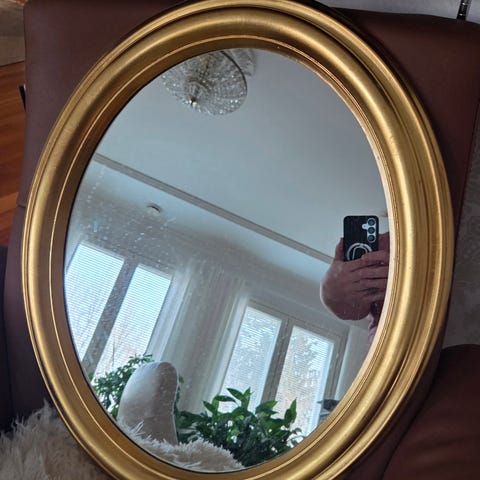 Hyväkuntoinen peili kehyksellä. Pituus 68 cm