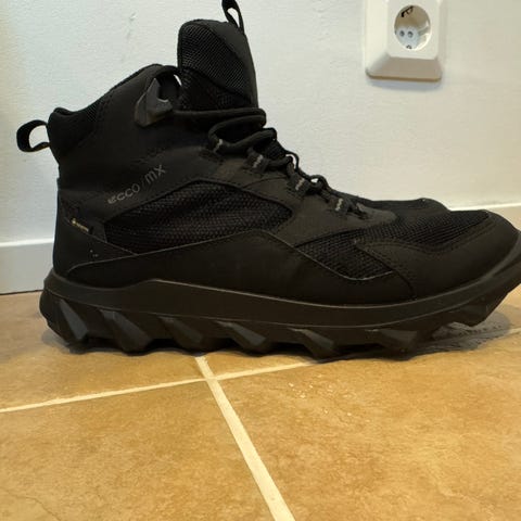 Ecco MX lenkkarit, koko 38. Väri musta. Kengissä on nauhakiinnitys, vetolenkit kannassa ja voimakkaasti kuvioitu ulkopohja, joka tarjoaa pitoa erilaisilla alustoilla. Päällinen on matalavartinen ja soveltuu arkeen ja kevyeen ulkoiluun.