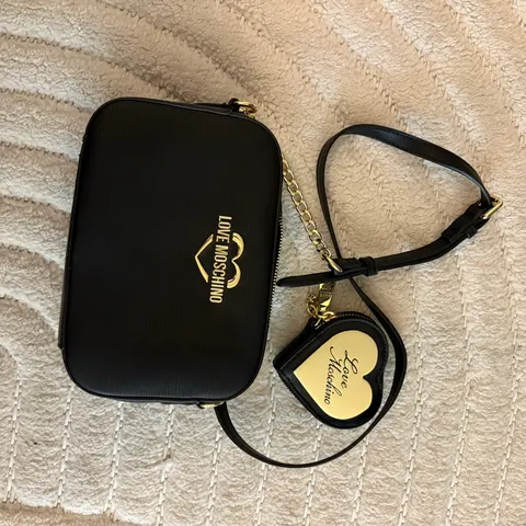 Moschino Love Moschino olkalaukku naisille. Laukku on valmistettu tekonahkasta ja siinä on tikattu pinta. Edessä on Love Moschino -logolaatta. Laukussa on kultasävyinen olkahihna, jota voi käyttää olalla tai crossbody-tyyliin. Soveltuu esimerkiksi arki- ja juhlakäyttöön pienten henkilökohtaisten tavaroiden kuljettamiseen.
