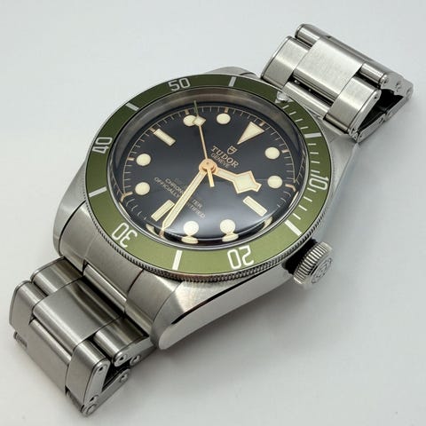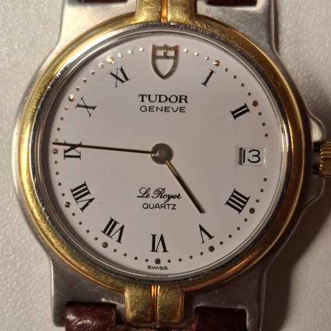 ranneke: Tudorin musta genuine lizard (krokotiili?) alkuperäinen nahkaranneke Tudor-soljella