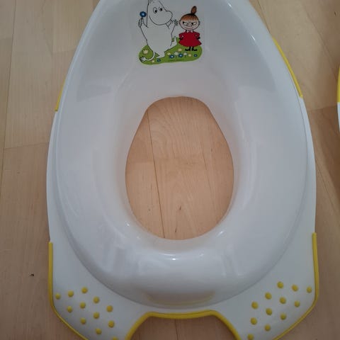Muumi wc-istuimen supistaja lapsille. Valkoinen supistaja, jossa keltaiset kumiset reunat ja liukuestepisteet. Soveltuu tavallisen wc-istuimen päälle. Kunto ok. Myynnissä myös toinen samanlainen. Vain nouto.