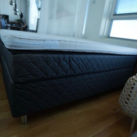 Hyvä sänky mutta 0atjan pinta on vaalea ja on kaatuput Cocacolaa yhteen kohtaan ja löytyy vähän käytönjälkiä. Päällysteet lähtee pois ja voi pestä taikka värjätä tummaksi.