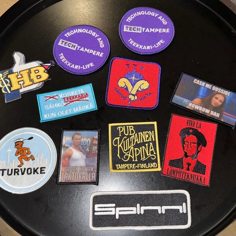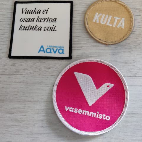 Myydään haalarimerkit/kangasmerkit. Hinta yhteensä 3 euroa.