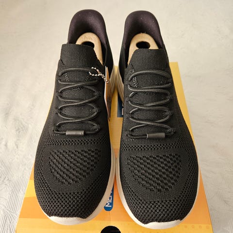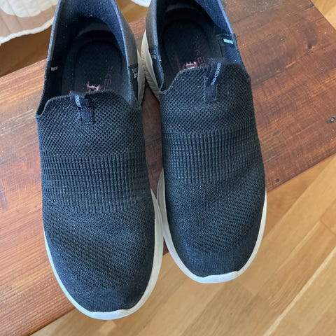 Todella mukavat Skechersin slip ins -kengät, jotka saa sujauttamalla jalkaan. Luonnonvalkoinen pitsimäinen pinta ja jalan muotoa tukeva Archfit-pohja. Koko 38 / 25 cm, joka tälle merkille tyypillisesti vastaa käytännössä kokoa 39.