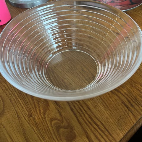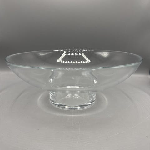 Iittala lasikulho, kirkasta lasia. Kulhossa on koristeellinen, jäämäinen reuna ja sileä keskiosa. Sopii esimerkiksi tarjoilukulhoksi tai sisustuselementiksi pöydälle. Kulhon pohjassa on valmistajan merkintä.
