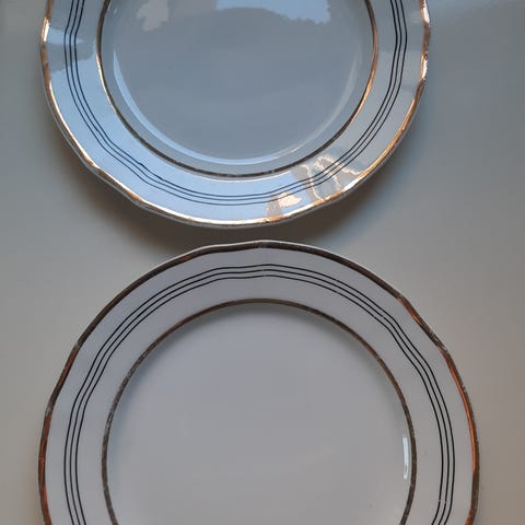 Arabia lautaset hedelmäkuviolla. Valkoiset posliinilautaset, joissa keskellä monivärinen hedelmäkoriste. Kuvissa näkyy yksi suurempi lautanen ja 6 kpl pienempiä lautasia. Lautasten pohjassa on Arabian leima. Sopivat esimerkiksi kattaukseen jälkiruoka- tai kahvilautasiksi, iso lautanen halkaisija 26 cm, pullalautaset halkaisija 17 cm, nouto Vuosaaresta.
