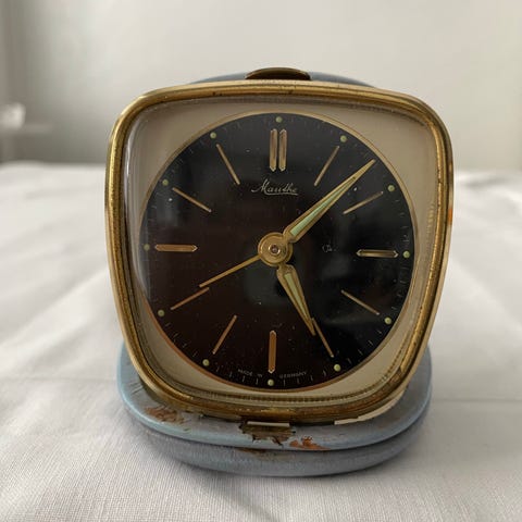 Saksalainen Mauthe vintage herätyskello. Herätyksen viritysnuppi puuttuu. Lasi on kahdesta kohtaa halki. Osa kellokeräilijän kokoelmaa. Toimivuudesta ei tietoa. Katso myös muut kohteeni!