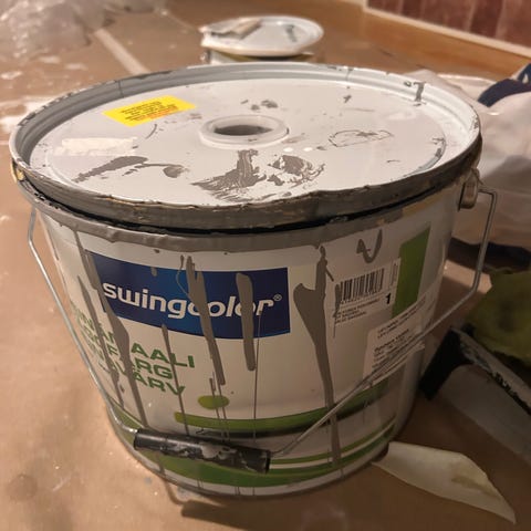 Avaamaton remontista yli jäänyt 4 L pakkaus Milieun Petrol Blue -sisämaalia, OVH 91€