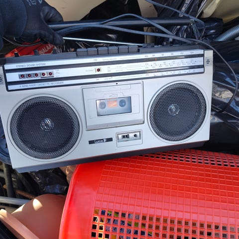 Vintage-tyylinen Sharp WQ-T281Z stereo-radiokasettisoitin boombox keräilyyn. Käyttöohjeet mukana. Laite on varustettu Twin Mechanism- kaksoiskasettidekillä. Kasettimekanismi toimii. Tämä malli on peräisin 1980-luvun lopulta ja on suosittu keräilykohde nostalgisen ulkonäkönsä vuoksi. Valmistettu Japanissa. Radiossa oleva virityslanka (asteikkonaru) on katkennut.