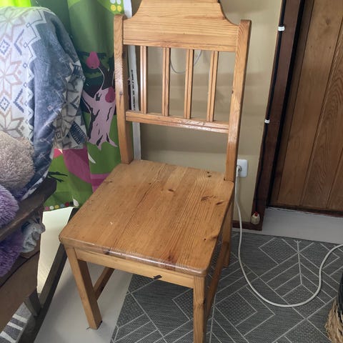 Myydään 4 kappaletta puusepän valmistamistamia tuoleja vanerisella istuinosalla. Tuoleissa käytön jälkiä, mutta ovat tukevia.