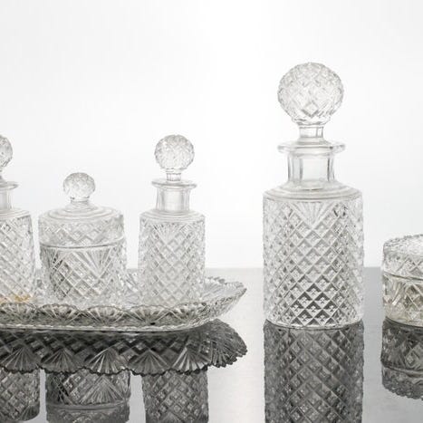 Erittäin koristeellinen Art Deco Luxval-kakkualusta «Cotes plates A», väri «läpinäkyvä», reunalla kohoavalla reunan suunnitellulla reunalla, suunniteltu Charles Graffartin ja Rene Delvennen toimesta Val Saint Lambertille (katso katalogin liitetyt kuvat).Merkitty pinnalle «val saint lambert»Kakkualusta on hyvässä kunnossa.On muuten täysin normaalia, että lasissa on ilmakuplia tai lasilangasta muistuttavia epämuotoja.Väri - LäpinäkyväMalli: «Cotes plates A»1930-luvulla Val Saint-Lambert esitteli tuotelin Luxval – puristetusta koristeellisesta Art Deco-lasi tuleb, joka oli tehty tuon ajan parhaiden suunnittelijoiden Charles Graffartin ja Rene Delvennen toimesta.