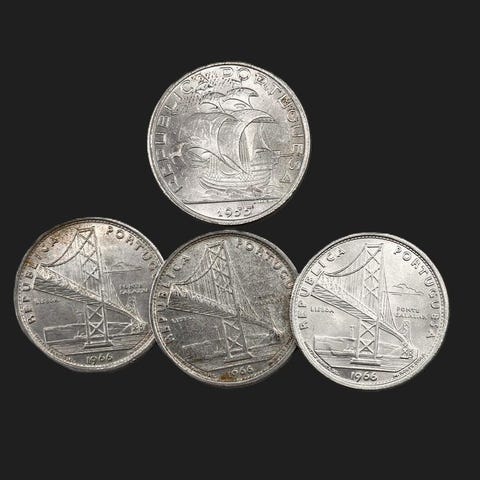 Portugali. 4 Silver (100 escudos + 10 escudos + 2 x 5 Ecudos (40.90gr) Várias