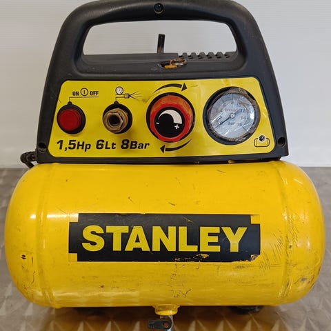 Gern ilmakompressori. Sininen vaakasuora säiliö ja sähkömoottori päällä. Soveltuu paineilmatyökalujen, renkaiden ja muiden paineilmaa vaativien kohteiden käyttöön esimerkiksi autotallissa tai verstaassa. Tarkemmat tekniset tiedot, kuten säiliön tilavuus ja teho, eivät käy ilmi kuvasta.toimii,mutta ei sammu vaan vaatii itse pois päältä laiton.