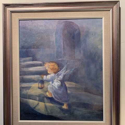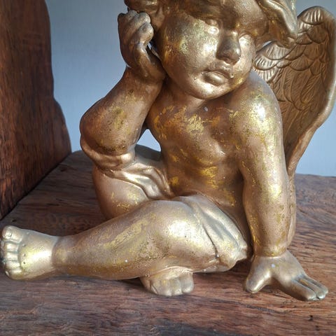 Messinki/valurautainen erittäin vanha enkelikoriste.