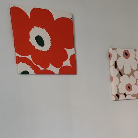 Uusi akryylipinnoitettu unikkokangas seinätauluksi . Noudettaessa taustalevy mukaan , postiin vain kangas . Nouto Hki , diili tai kirjepostina 17,50