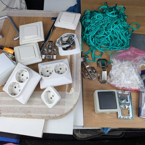 Annetaan pari paksua keittiön tasosta ylijäänyttä levyä ja kolme hyllylevyä. Valkoisten hyllylevyjen koko noin 20 x 50 cm. Paksujen levyjen koko 35 x 60 cm ja 35 x 45 cm. Mitat eivät ole tarkkoja.