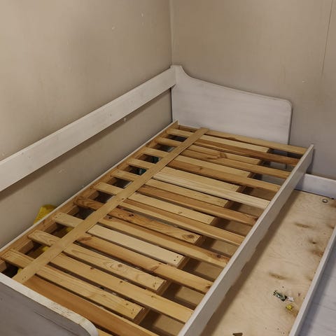 Levitettävä sänky alulaatikolla.