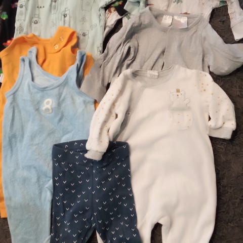 3 kpl haalareita, 5 kpl housuja ja 3 kpl potku haalareita. Koko 56