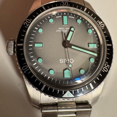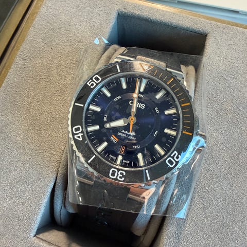 Oris - 01 733 7766 4157-07 8 22 05PEBKotelo: ruostumaton teräs / keramiikkainen bezelKellokoneisto: sveitsiläistä automaattikalibraa 733Kellotaulu: vihreäØ: 41,5 mm (ilman kruunua)Lasi: safiirilasiRanneke: alkuperäinen ruostumattoman teräksen rannekeRannesivun koko: n. 21 cmKunto: Uudenveroisessa kunnossa!Takuu: Oris-takuuToimitus: alkuperäisessä laatikossa + originaali Oris-sertifikaatti + aitoustodistus "de Horlogemeesters"Toimitus: tämä kello lähetetään rekisteröidynä ja vakuutettuna (DHL Express).#FreeShipping2025LUX