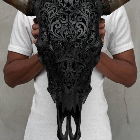 Käsin kaiverrettu vuohikäpyjen pääkallo, joka on kaiverrettu käsityöläisten toimesta, jotka ovat siirtäneet vanhan kaiverrustaidon isästä poikaan. Kallo on kokonaisuudessaan käsin kaiverrettu huolellisesti. Se on epätavallinen, koristeellinen kappale. Saatavilla räätälöidyn jalustan kanssa.Kalloihin on kaiverrettu kaunis saniaislehtikuvio.ARVIOITU KOKO mukaan lukien jalustaKorkeus: 37 cmLeveys: 19 cmVASTUUVÄITÖKSET- Kalloon on kiinnitetty nyöri, jotta se voidaan asentaa seinälle.- Sarvet irrotetaan kuljetusta varten, ja ne voidaan helposti kiinnittää takaisin. Sarvet ovat aina pakattu kappaleen alapäähän laatikon pohjalle. Varmista, että poistat sarvet ennen pakkausmateriaalin hävittämistä.- Koska kyseessä on luonnollinen kallo, kallossa ja sarvissa saattaa olla luonnollisia pienempiä halkeamia ja uurteita. Tämä on normaalia. Katso kuvat.- Kalloamme puhdistetaan ammattimaisesti, mutta toisinaan hampaissa saattaa esiintyä pientä värivaihtelua. Tämä on luonnollista ja normaalia, eikä sitä voi tehdä paljon toisin. Katso kuvat.- MAINITTU PAINO SISÄLTÄÄ PAKKAUSMATERIAALIN.LÄHETYS- Tuote lähetetään seuranta- ja paikannusmahdollisuudella DHL Parcelin, DPD:n tai postNl:n kautta. Seuranta päivitetään Catawiki-huutokauppakohtaan, kun paketti on jätetty postiin.- Tarkista tilauksesi säännöllisesti, jotta pakettisi ei palautuisi meille; tällöin ostaja vastaa toisesta lähetyksestä aiheutuvista kustannuksista.- Espanjaan ja Portugaliin suuntautuvaa seurantaa varten käytä tätä linkkiä ja lisää Catawiki-tilauksesi seurantanumerohttps://clientesparcel.dhl.es/LiveTracking/Home- ME EI YHDISTÄLÄHETYSTÄ!!!- Jos sinulla on kysyttävää paketistasi, ota meihin yhteyttä Catawiki-viestipalvelun kautta. Pyrimme vastaamaan kolmessa työpäivässä.