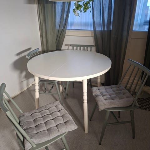 Retro ruokailuryhmä+4 tuolia sekä 2×30 cm jatkopalaa.