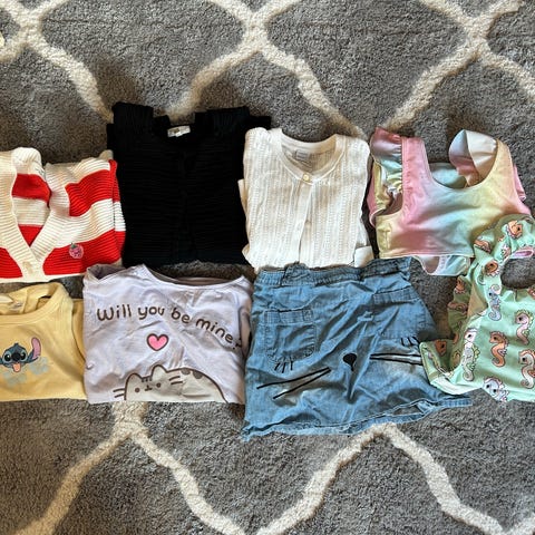 Mukana mm. Gugguu mekko, Vimma denim takki, lyhythihaisia mekkoja, farkkutakki ym. Koot 120, 130, 122/128, muutama 134. Siisti käytetty kunto. Ei lemmikkitalous.